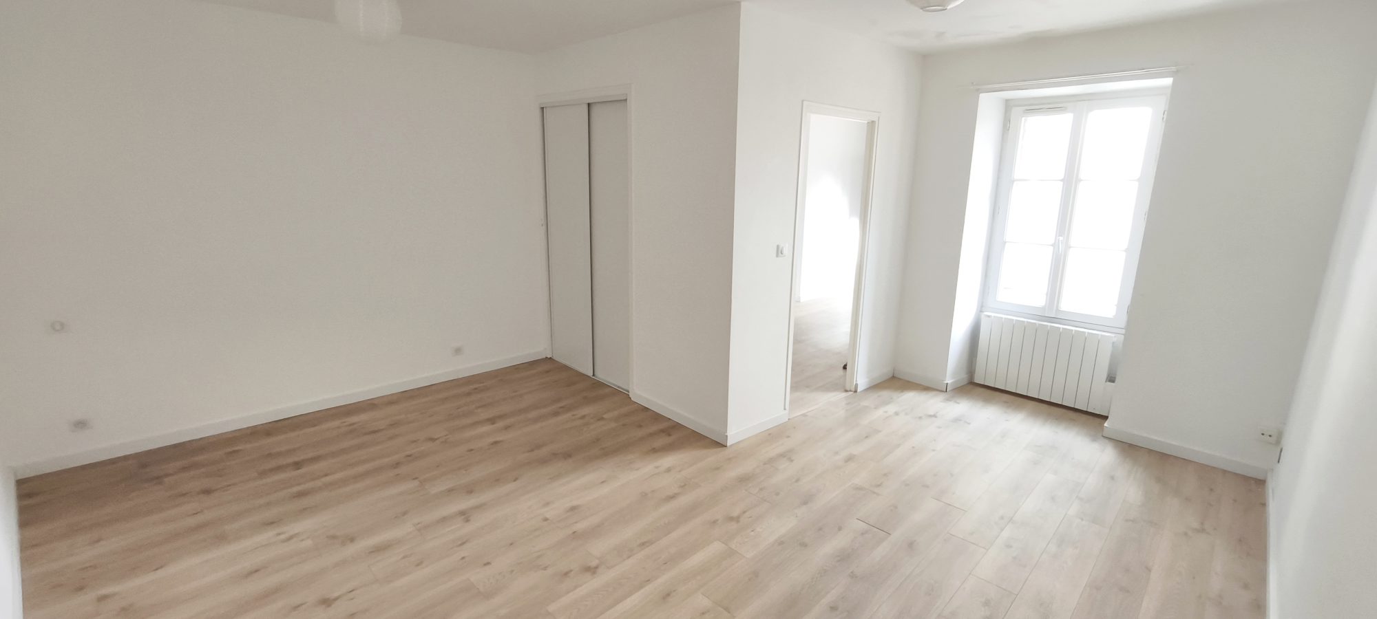 - Coin nuit équipé d’un grand placard à portes coulissantes